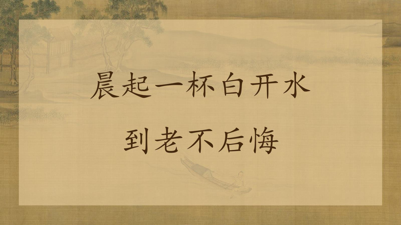 2023/10/14 17:02:38晨起一杯白开水.到老不后悔俗话说:“晨起一杯白开水,到老不后悔”。每天早晨洗脸漱口后空腹喝杯温水可预防疾病的发生,延缓衰老。清晨饮水法可以预防脑血栓、心肌梗塞等循环系统疾病。因为,在血管中流动的血液有55%是由红细胞等有形物质组成的,如果体内水分不足,血液…